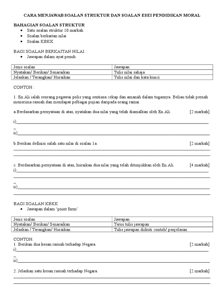 Cara Menjawab Soalan Struktur Dan Soalan Esei Pendidikan Moral Pdf